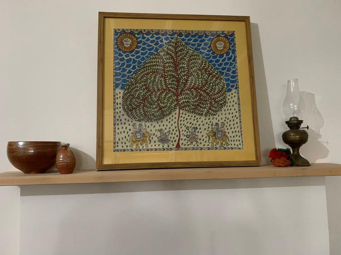 Folk art paintings from Bihar, India, typically depicting harvest scenes and nature.