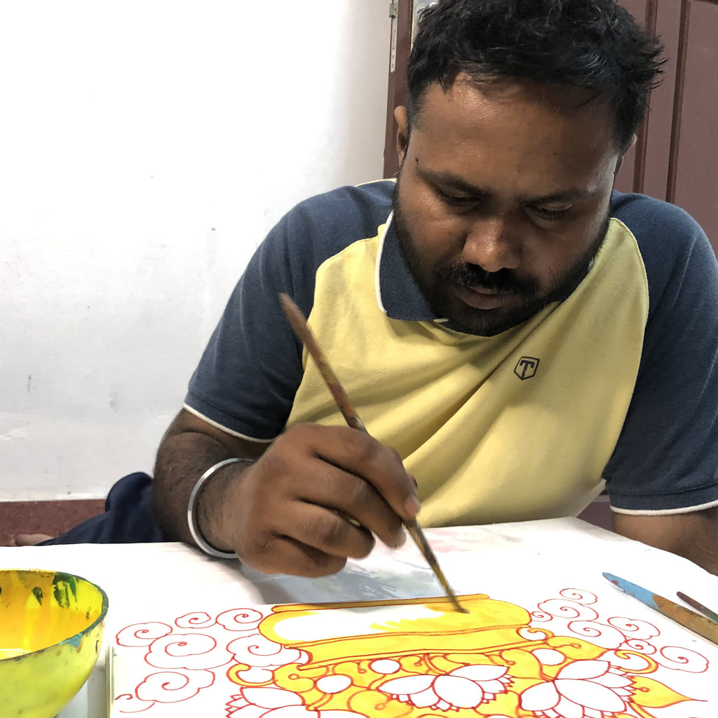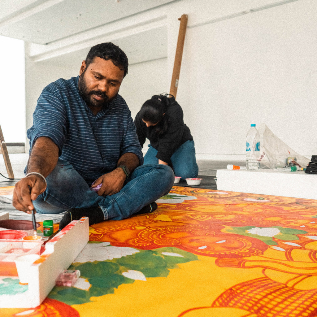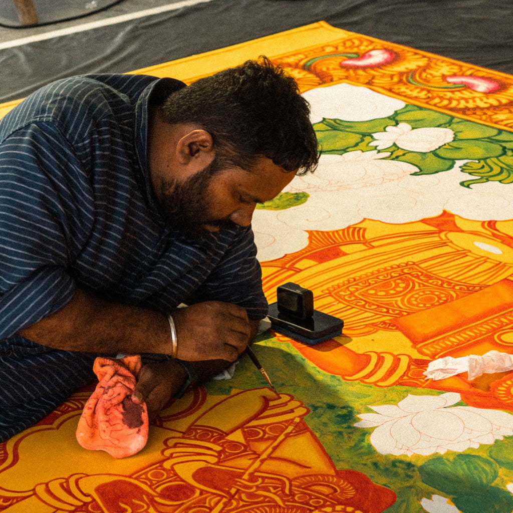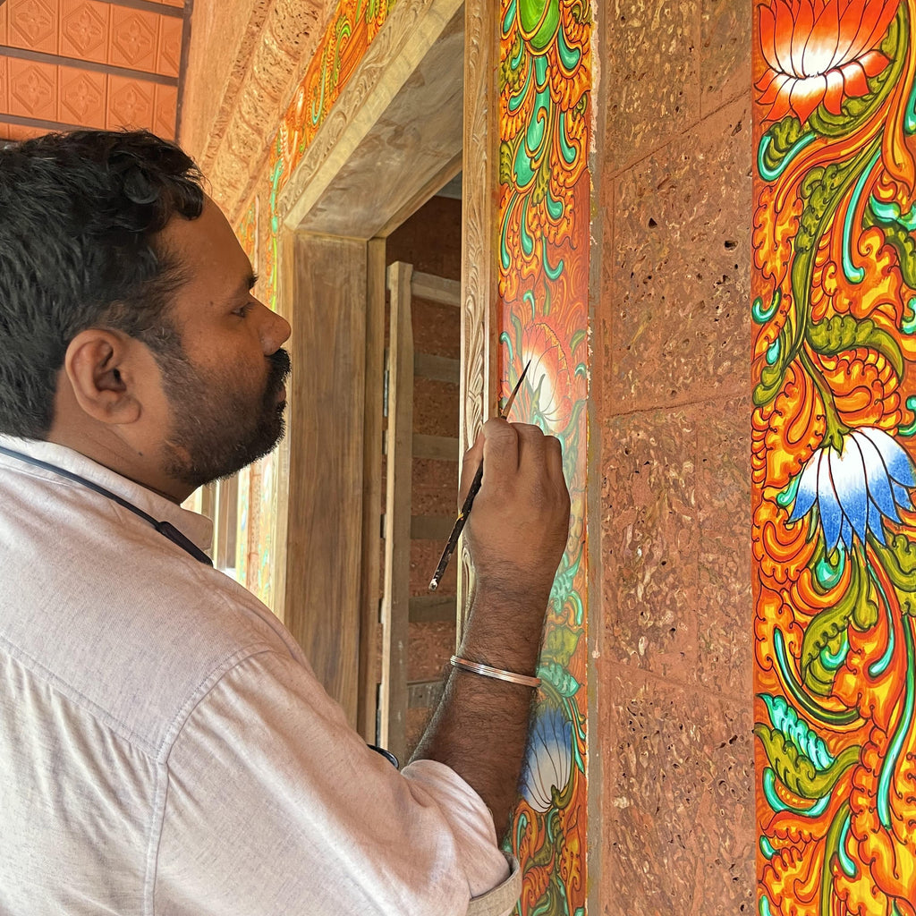 Bio | Adarsh's artistic odyssey commenced as he delved into the captivating world of Kerala Mural painting under Guruvayur's guidance from 2003 to 2008. Transforming into an art conservation champion, he ardently collaborated with governmental entities and UNESCO to safeguard Kerala's exquisite mural heritage, ensuring its legacy endures. Spanning the golden era of the 15th to 19th centuries, these murals, characterized by their distinctive techniques and aesthetic allure, embody a fusion of natural beauty, elegance, and profound devotion—a testament to Adarsh's dedication in preserving the cultural tapestry of Kerala through his artistic endeavors. |