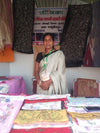 Gudiya Devi, in her Sujani Art artfully adorns the Varmala scene with colorful stitches using cotton and silk threads, on a fabric named khadi. The Varmala ceremony is a central ritual in Indian weddings, particularly in the Hindu tradition. It involves the exchange of garlands between the bride and groom, symbolizing their acceptance of each other as life partners. In Sujani art, depicting this scene signifies the union of two souls and the beginning of their marital journey. Sujani art is a reflection of the cultural heritage and traditions of Bihar and the surrounding areas. By including the Varmala scene, artisans pay homage to the region's rich cultural tapestry and preserve these customs for future generations. The Varmala scene provides an opportunity for intricate and colorful embroidery work, adding aesthetic value to the artwork.