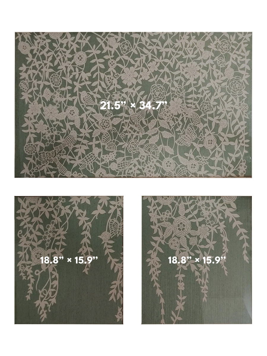 Set against a pastel green background, the cream-toned cutwork takes center stage, its delicate details contrasting softly with the backdrop. Gold frames enhance the artwork’s elegance, adding a sophisticated touch to the natural theme. Ashutosh Verma’s precision and dedication to craft are evident in the intricate patterns, which reveal a deep appreciation for nature’s beauty. The composition exudes tranquility, evoking a peaceful moment in time where the delicate charm of flowers, birds, and butterflies comes together in perfect harmony.