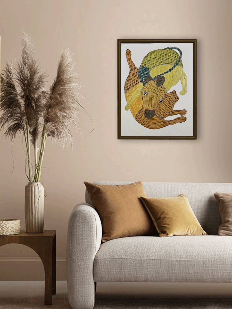 Bio | Gareeba Singh Tekam, a distinguished Gond Artist hailing from Dindhori, Patangarh, Madhya Pradesh, has dedicated 25-30 years to mastering the intricate art form of Gond painting. Influenced by his family legacy, Gareeba learned the art from the renowned pioneer of Gond painting, Jangarh Singh Shyam. Alongside his wife and daughter, he passionately continues this artistic tradition, primarily receiving national recognition while occasionally garnering international acclaim. Despite limited formal education up to the 6th grade, Gareeba's artistic prowess shines through his vibrant creations, which often depict the enchanting beauty of nature. His largest masterpiece, a stunning 10 feet by 8 feet painting showcased at the Taj Hotel during the Dastakar Haat Committee event, highlights his deep connection to the environment. While Gareeba predominantly paints on canvas and paper, his versatility extends to various materials, ensuring his captivating narratives find expression on walls and fabrics alike. Fueled by a desire to preserve cultural heritage and share stories from the annals of history through his art, Gareeba remains steadfast in his commitment to both tradition and innovation, inspiring future generations to cherish their roots amidst the rapid pace of modernization. |