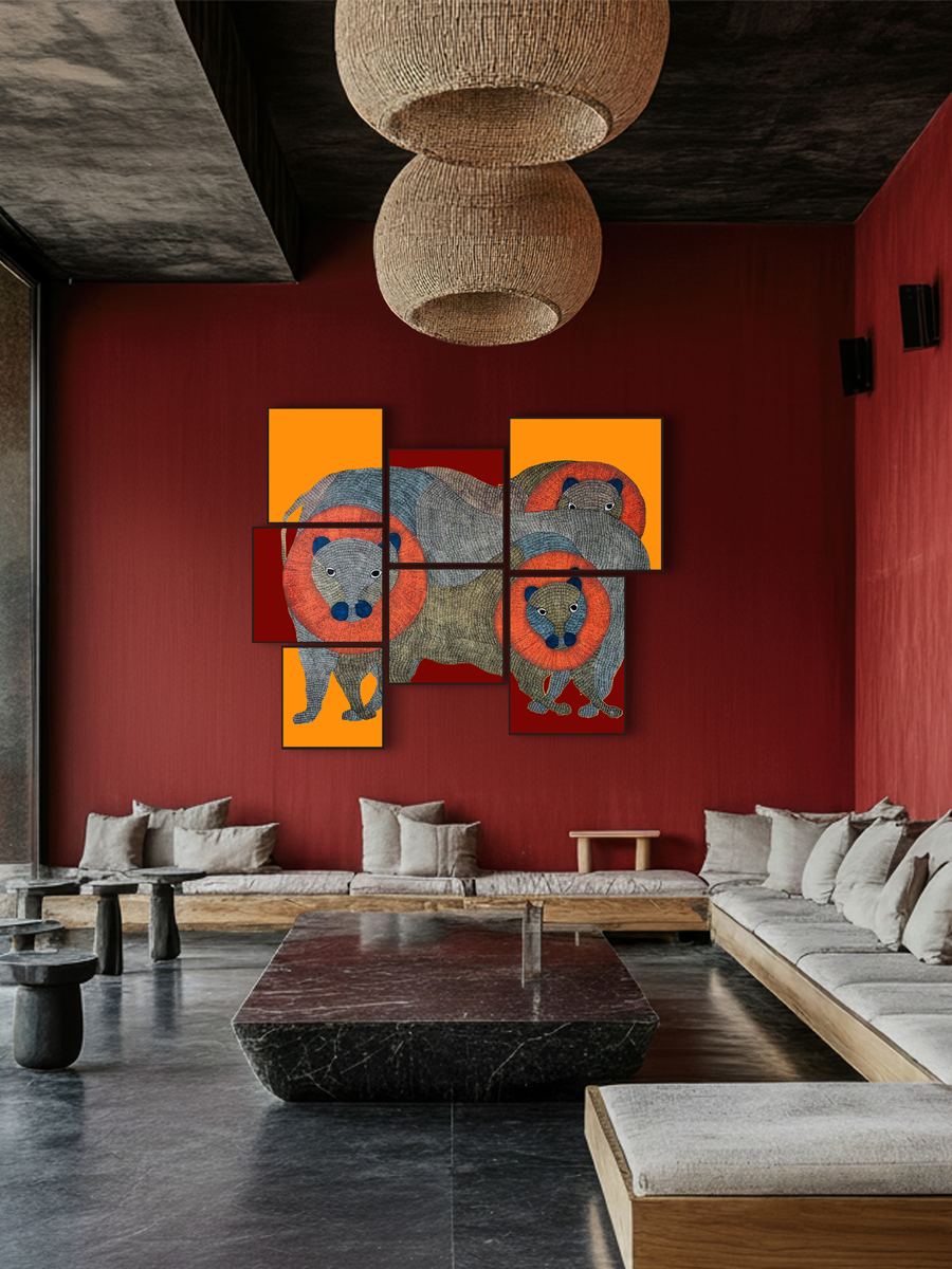 Tekam's meticulous attention to detail is evident in every stroke of the brush, with each deer meticulously adorned with intricate patterns and motifs. The vivid colors and dynamic compositions not only captivate the viewer's attention but also convey a sense of harmony and balance inherent in nature. This interpretation of the Tree of Life is particularly striking, offering a fresh perspective on traditional Gond art with its vivid colors and dynamic compositions. Gond art originated as a form of ritualistic expression among the indigenous Gondi tribe of central India, with artists using natural materials like charcoal and plant-based pigments to create intricate designs on the walls of their homes and other surfaces.