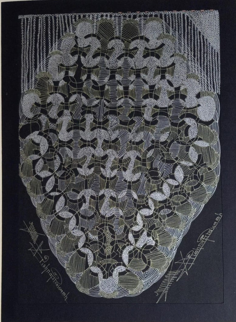 In Krishna Prakash's Surpur art, the divine presence of Lord Ganesha emerges with striking creative flair, blending tradition with contemporary style. Rendered in ink on paper, this line art masterpiece showcases intricate white lines against a bold black canvas, evoking a sense of profound symbolism and spiritual depth. Ganesha, the remover of obstacles and harbinger of auspicious beginnings, is depicted in a way that resonates with both reverence and innovation. His form exudes power and grace, embodying the eternal struggle against negativity while ushering in the light of virtue. Each line, meticulously crafted, carries the weight of centuries-old stories and beliefs, inviting contemplation and appreciation for the enduring beauty of Indian culture. In Prakash's skilled hands, Ganesha transcends mere artistry to become a beacon of hope and inspiration for all who behold him.