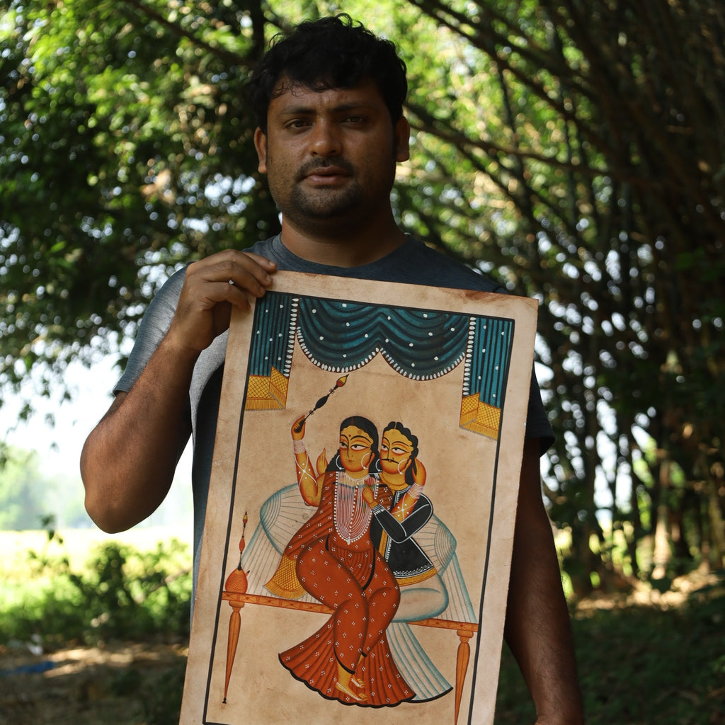 Bio Uttam Chitrakar, born in 1991, is a remarkable Kalighat artist whose creative journey began under the guidance of his father. His artistic prowess flourished further through the teachings of his family members. Specializing in the Kalighat style, Uttam Ji skillfully captures the essence of Babu Culture in his works.