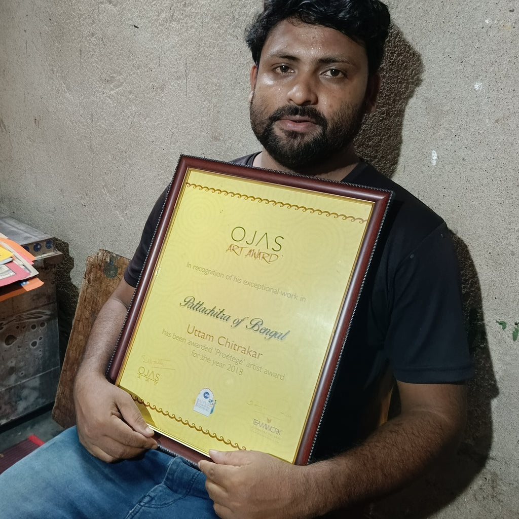 In 2018, he earned recognition as an Ojas Art Protégé Artist, showcasing his commitment to excellence. Uttam's artworks have graced prestigious institutions such as Chitrakala Parishad in Bengaluru, IGNCA in Delhi, Victoria Memorial Hall in Kolkata, and the Crafts Museum in Delhi. His ability to breathe life into the Kalighat tradition is truly commendable, making him a notable figure in the realm of Indian art.