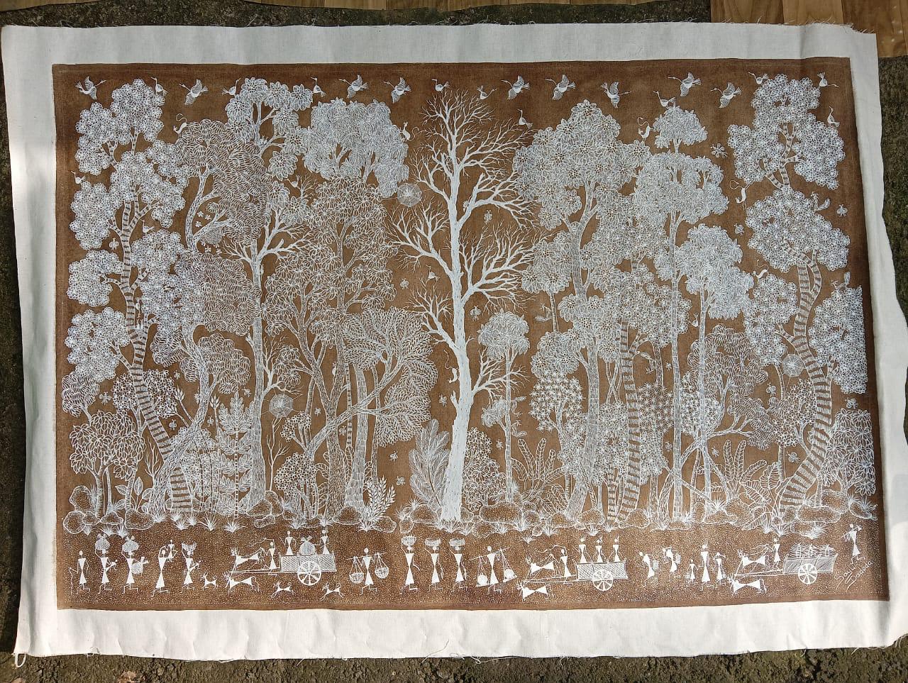 The Village Migration in Warli by Sayli Prasad Dadoda